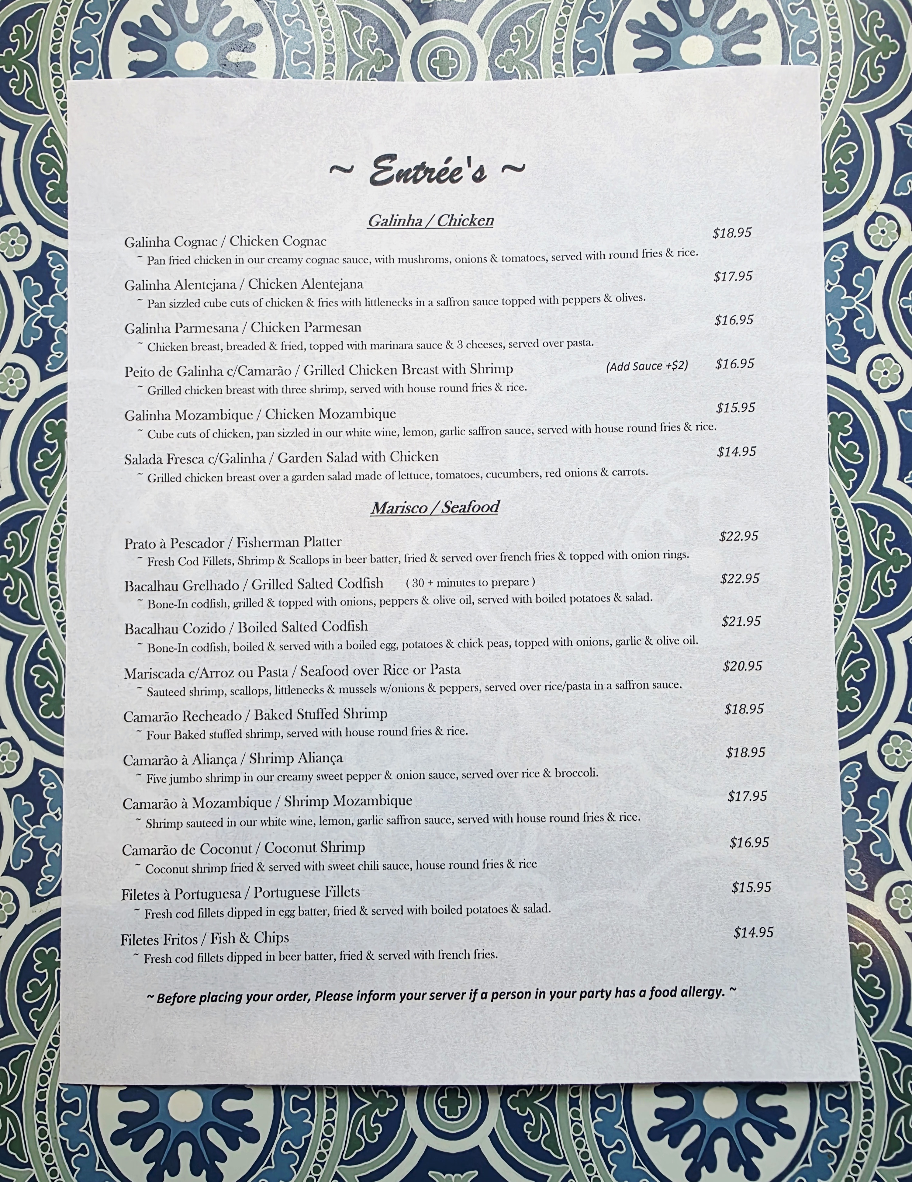 Once you try one of our dishes, you'll already be planning your next visit. Come to our restaurant and bar today to enjoy delicious and authentic Portuguese food with your friends and family. We're open every day except Tuesday.
